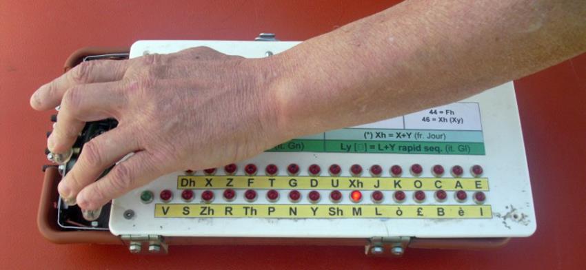 Come è noto il problema della comunicazione tra sordomuti, sordo ciechi e i cosiddetti normodotati non è affatto agevole. Osservando l"incomprensibile mimica dei disabili in questione si capisce quanto questa semplice operazione sia in realtà molto complicata con il risultato che, spesso, i rapporti affettivi al di fuori della loro cerchia famigliare possono essere seriamente compromessi. Per fortuna, grazie al particolare apparecchio ideato e successivamente brevettato dal Sig. Pegoraro Paolo, un ipovedente dalle immense risorse sia tecniche che umane, i problemi sopra accennati saranno definitivamente risolti. L’oggetto in questione riguarda infatti un’innovativa tastiera elettromeccanica da abbinare a un guanto, o fissare direttamente al polso come un orologio con i terminali collegati alle dita, in modo che lo stesso “parli” al posto dell’utente semplicemente azionandolo con le mani così da farlo interagire verbalmente con il mondo circostante. Il trovato, come si evince dalla descrizione, dalle foto e dai filmati allegati, risulta di facile realizzazione visto che si possono tranquillamente utilizzare procedimenti costruttivi già in uso e, grazie alla sua semplicità progettuale, potrà essere prodotto a costi molto contenuti. Se siete quindi interessati a questo geniale dispositivo e desiderate ricevere informazioni più dettagliate contattateci ai nostri recapiti telefonici indicati a fine pagina oppure scriveteci utilizzando l’apposito