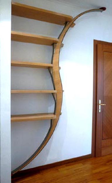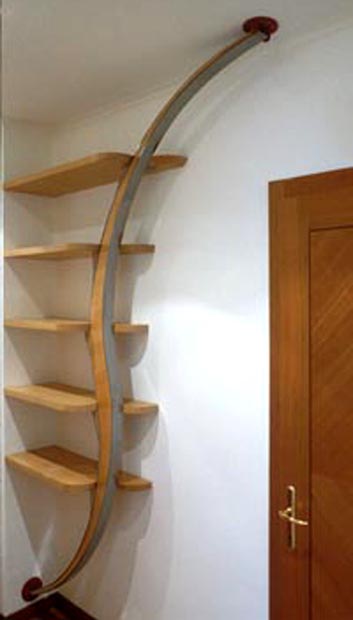 Il modello in questione, progettato e costruito dal Sig. Roberto Poleggi, riguarda una struttura modulare dalla linea innovativa le cui forme curve distanziate tra loro, si legano centralmente in senso contrario, il tutto da destinare a varie funzioni come libreria o piani per riporre oggetti. Alle sue estremità, sia in alto che in basso, è posizionato un particolare snodo fissato su piedini metallici di forma circolare muniti di due fori atti ad assicurarne il perfetto ancoraggio a pareti e soffitti. L’interno della struttura metallica, a fini estetici, è rivestito di legno così come le mensole, vantaggiosamente contornate da una rifinitura decorativa in plastica che ne delimita la forma. Le parti finali delle mensole anch’esse in legno, sono modellate in perfetta simmetria con la struttura principale dove piccole basi metalliche ne consento l’appoggio. Ogni singolo accessorio, è rivestito da legno pregiato rifinito con motivi decorativi in plastica con lo scopo di delimitarne le forme. La parte finale delle mensole è ancorata alla struttura muraria, ognuna di loro munita di un apposito meccanismo a scorrimento situato al proprio interno. Con la struttura qui rappresentata è possibile creare motivi semplici oppure complessi al fine di arredare qualsiasi spazio disponibile. Se siete quindi interessati a questo geniale accessorio e desiderate ricevere informazioni più dettagliate, contattateci ai nostri recapiti telefonici indicati a fine pagina oppure scriveteci utilizzando l’apposito